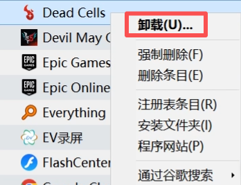 右键欲卸载的软件,随后在弹出的菜单里选择<卸载>操作即可,卸载后会弹出相关的注册表条目弹窗,点击删除即可。