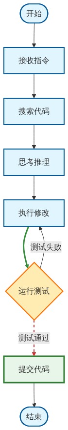 - 纠错(Correction):AI 通过运行测试和日志分析进行自我迭代,开发者仅在关键决策点介入。