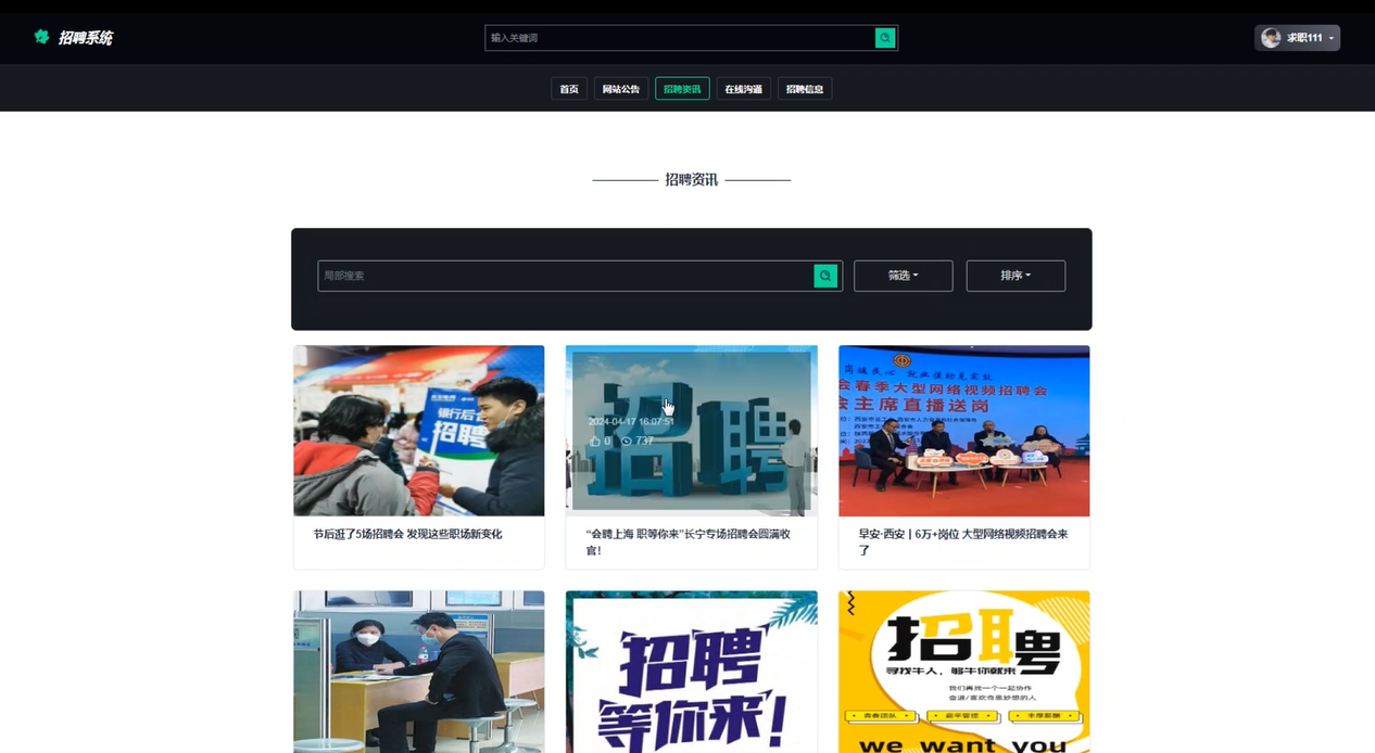- 网站公告:系统会定期发布各类公告信息,如节假日安排、系统更新、活动通知等。求职用户可以在此模块查看这些公告,及时获取系统最新动态。