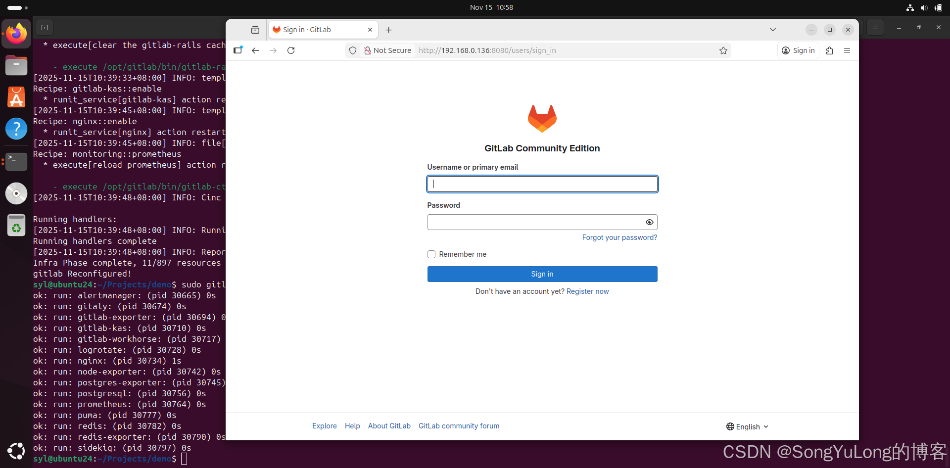 如果提示错误可能是puma端口冲突,编辑gitlab.rb重新配置后重新启动