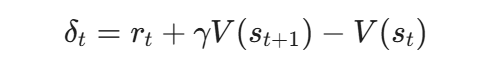第一,计算单步优势(TD Error,时序差分误差):这一步的核心,是比较“当前动作的即时奖励 + 下一步状态的价值”,与“当前状态的价值估计”之间的差值,本质上是衡量“旧的价值预测”与“更新后的新目标”之间的误差。