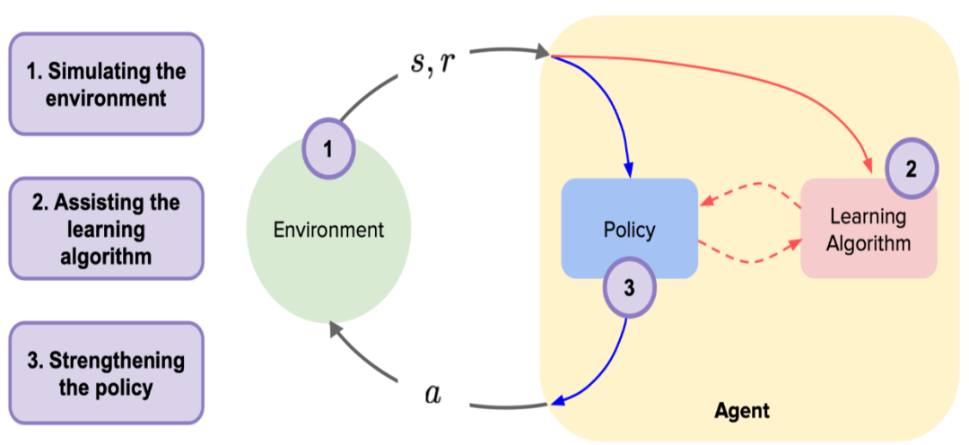 (5)环境 Environment:LLM的RL环境比传统RL更抽象,通常指的是模型所接收的上下文约束、奖励模型输出的评分,以及对话历史(chat history)等。简单来说,环境就是智能体(LLM)做出决策时的“外部条件”,为智能体生成Token提供依据。
