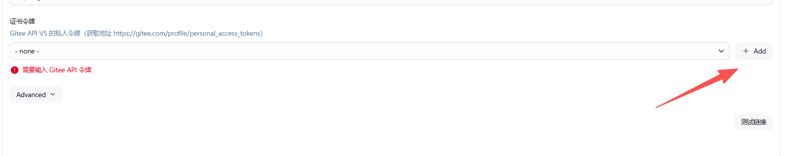 链接名可自定义,域名固定、令牌根据提示从私人令牌 - Gitee.com获取