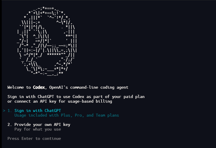 激活codex后,我们选择第一个用ChatGPT账号登录。