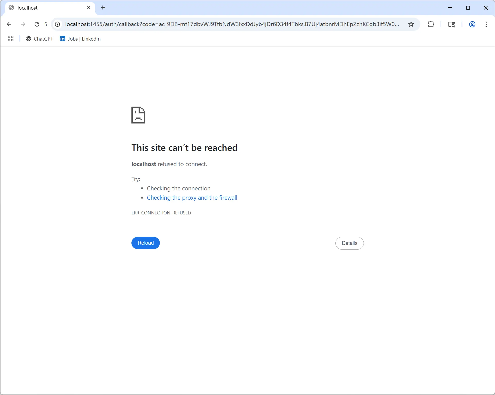 由于服务器无法打开网页,所以我们登录GPT账号只能在本地电脑上登录。复制网页到本地登录账号后出现了无法连接的情况。