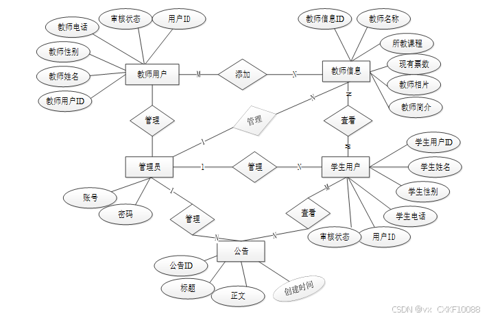 During the design, the system deeply analyzes the user roles and business needs, and divides the different use scenarios and functional requirements of students, teachers and managers. Student users can log in to register, browse the course and teacher details, and easily submit comments; teacher users can consult the course information, students' learning situation and feedback of evaluation results; managers have comprehensive system management authority, covering user account, course arrangement and maintenance of evaluation data.