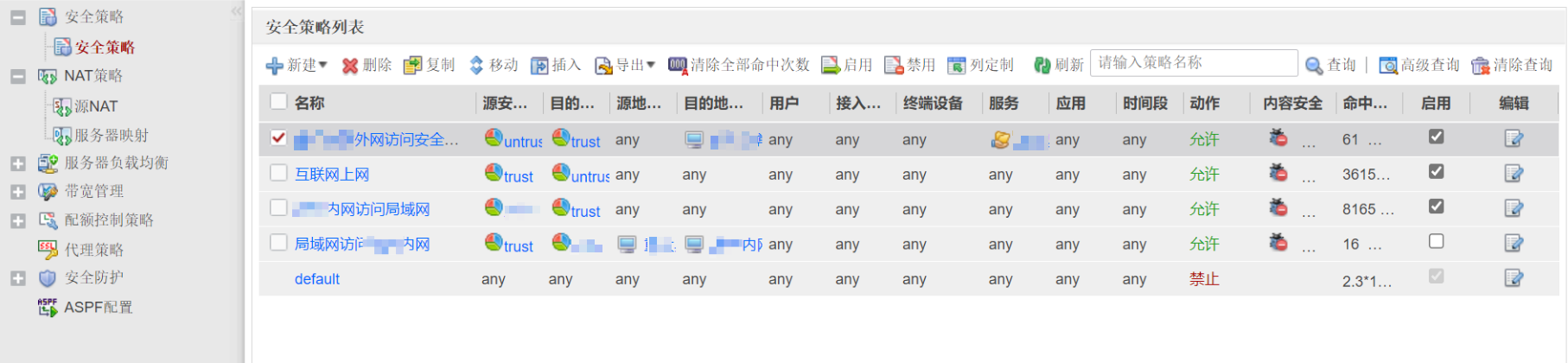 参照上面的新建NAT安全策略,将内网的端口加入到安全策略中。内外网端口不一致时,也只加内网端口,不需要给外网端口加安全策略。