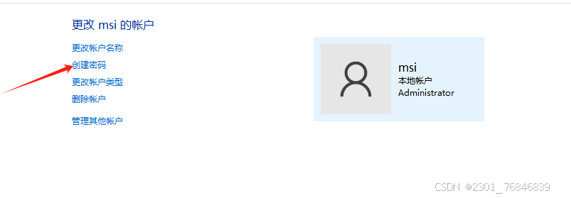 4.1开机后,我们点击左下角输入“控制面板“”,进入后点击用户类型——>更改用户类型——>选择需要设置密码的账户——>创建密码。这样我们就完成了密码的重置并解决了忘记开机密码的问题啦!!