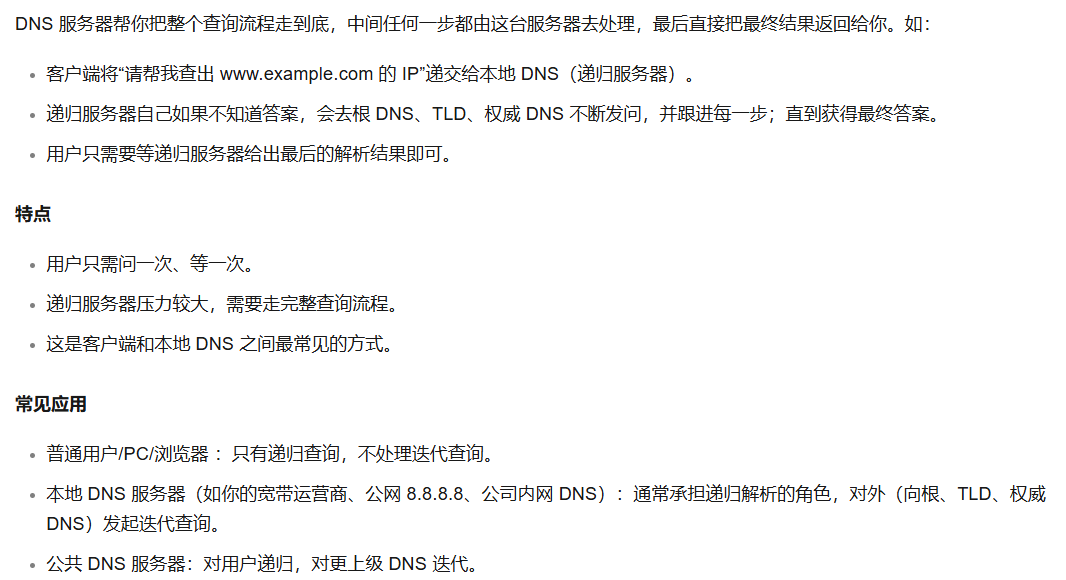 递归 DNS 服务器需逐级向上级服务器查询,直至获取权威记录: