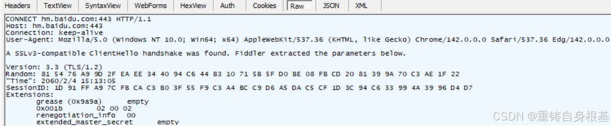 - Fiddler Classic是一款抓包工具,你电脑上所有访问网络的行为,即从网络中获取数据,将数据上传到网络中的行为都会被Fiddler Classic抓到并显示到如下界面上,刚刚小编在浏览器上使用百度进行了搜索,所以就被Fiddler Classic进行了抓包,并且将抓取到的进行显示,那么我们分别点击右侧上面和下面界面的Raw,右侧的上半部分即http请求,左侧的下半部分即http响应