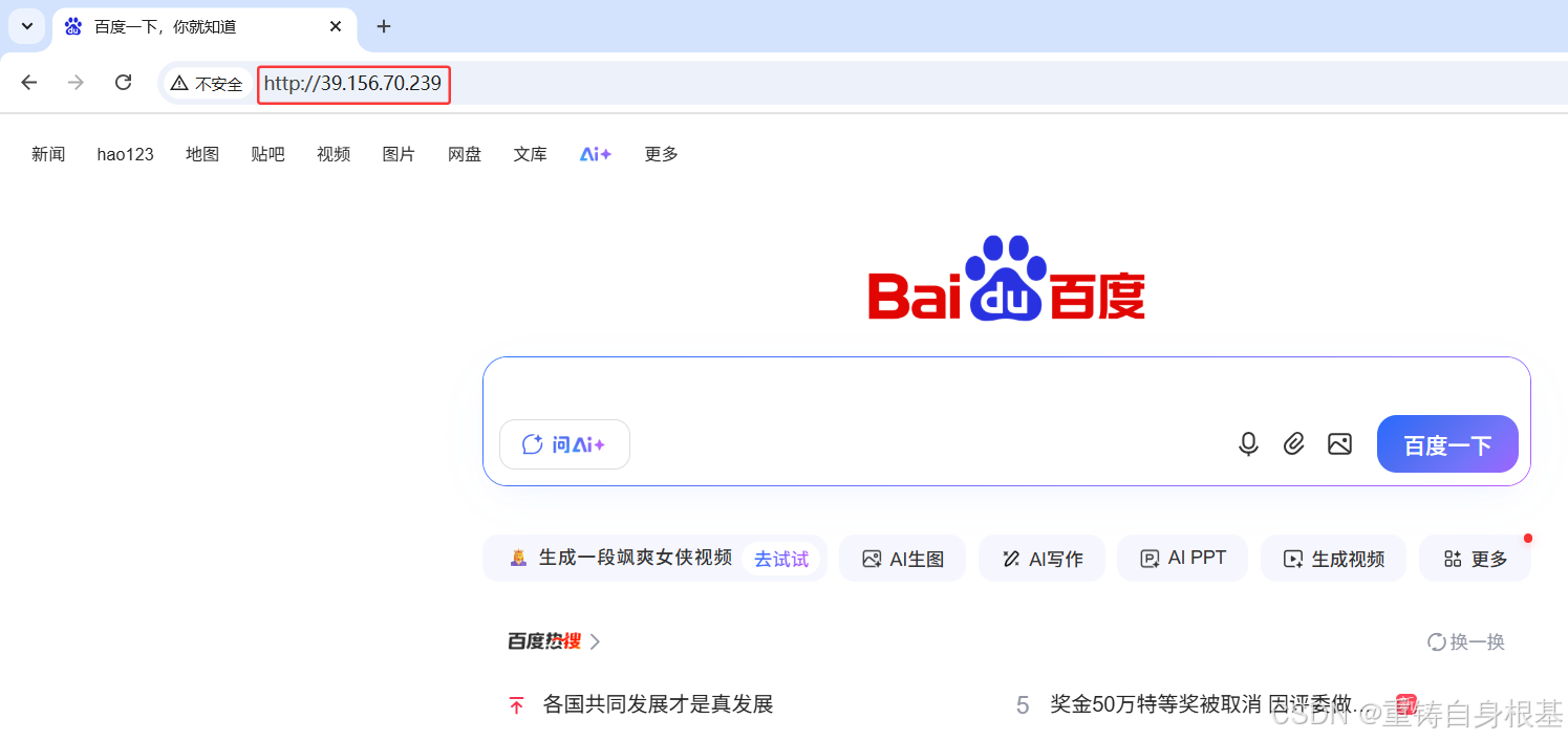 - 此时我们神奇的进入到了百度主页,即此时我们使用的是 http://39.156.70.239/ 访问的百度主页,并且在前面默认浏览器帮我们补齐了http,所以可以说明,其实域名本身就可以经过域名解析,解析成IP地址,小编,我已经成功的见到了IP地址,可是端口号呢?为什么我们没有看见百度的端口号呢?