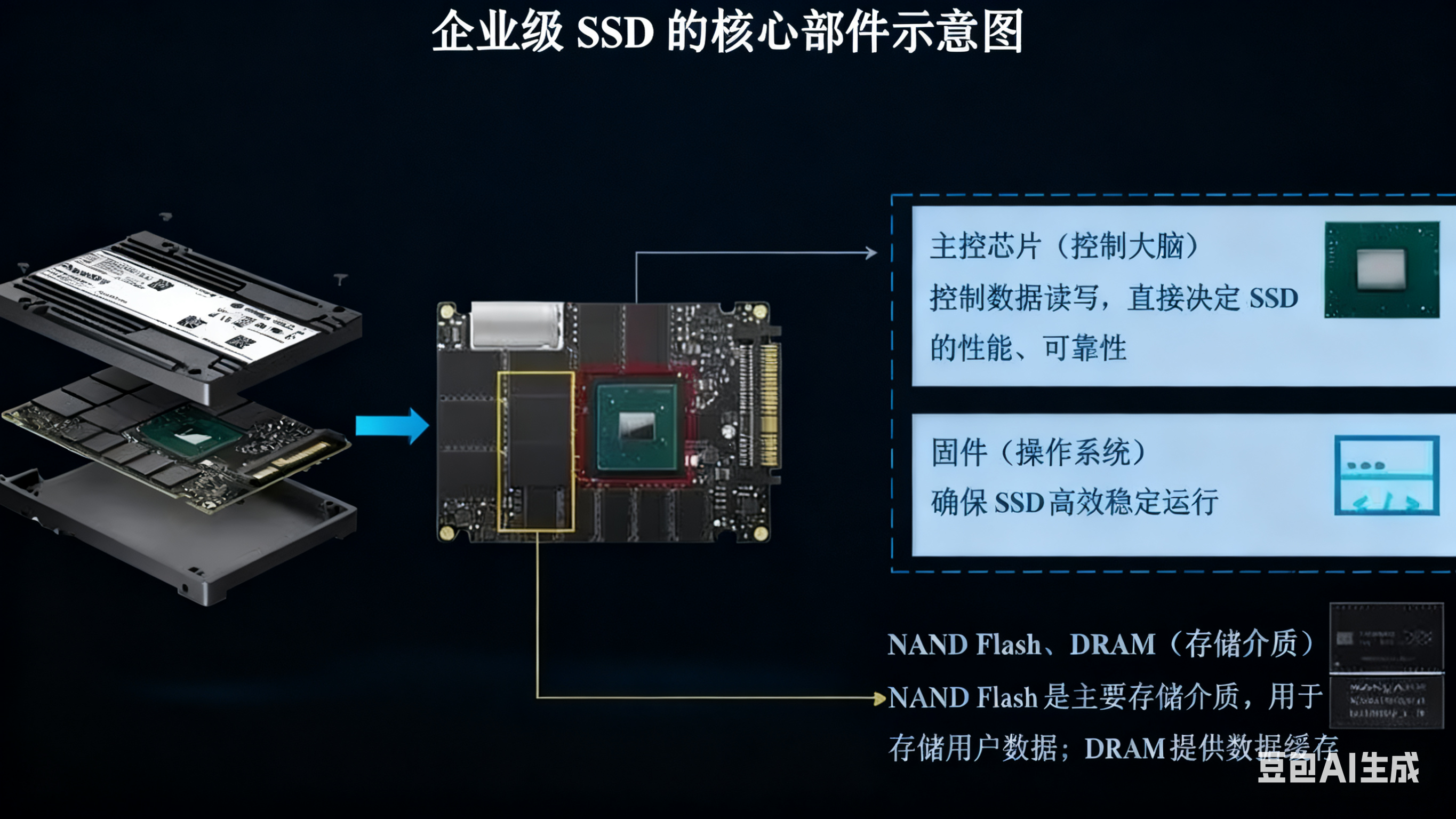 服务器作为IT设备,我们常说的服务器组成三大件是CPU、内存和硬盘(AI服务器会包括GPU),其中硬盘的作用可以理解为服务器的“数据仓库”,用于存储各类数据文件(可细分为系统盘、缓存盘和数据盘)