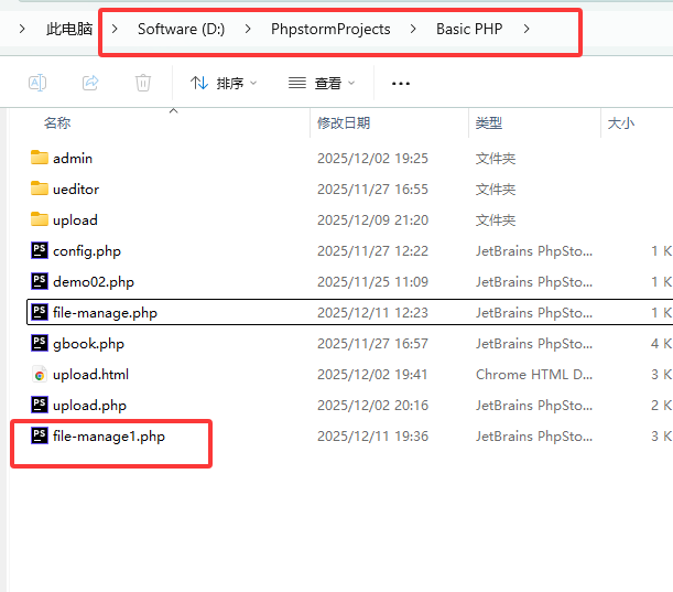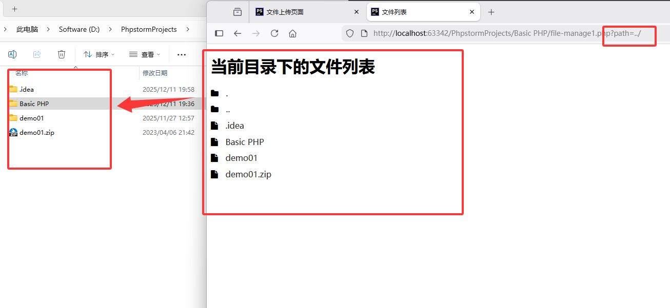 我们代码当前所处在D:PhpstormProjectsBasic PHP目录中,所以我们web页面就自然的显示当前目录下的所有文件
