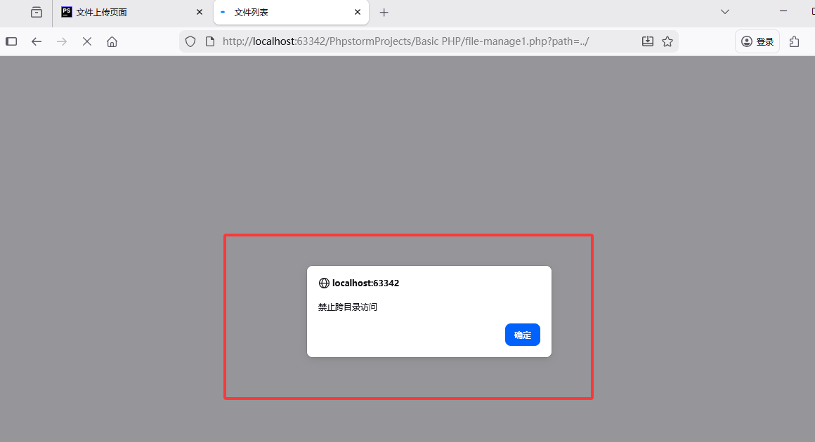 $dir是'../',就会弹出一个警告框,提示 “禁止跨目录访问”。 - 如果不是