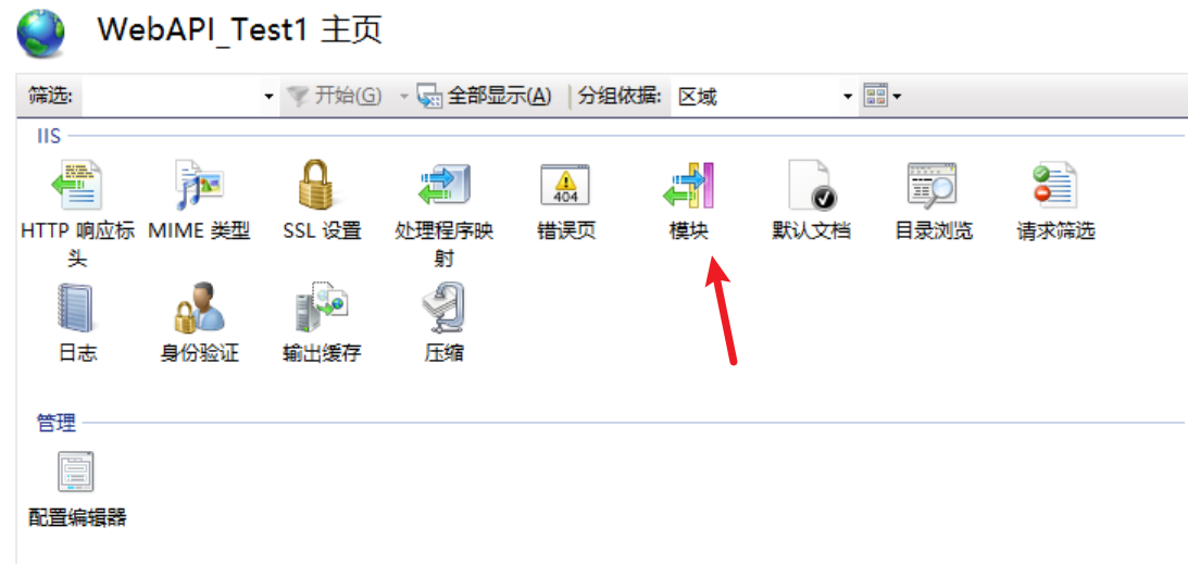 点击 你的 IIS 网站项目,双击鼠标左键进入 模块