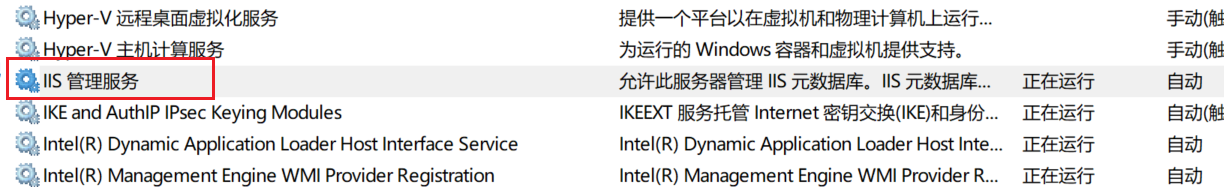 安装成功后,需要重启 IIS 服务,我们找到服务 --> IIS 管理服务,将其重新启动