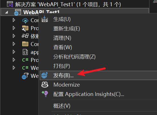 在 VS 2022 中,创建一个 ASP.NET Core Web API 项目,项目我就使用默认的代码,没有添加任何代码,也没修改任何配置文件,系统我使用的是我自己的电脑,Win11 系统,如果是 Windows 服务器系统,比如:Windos Server,用法也大差不差。