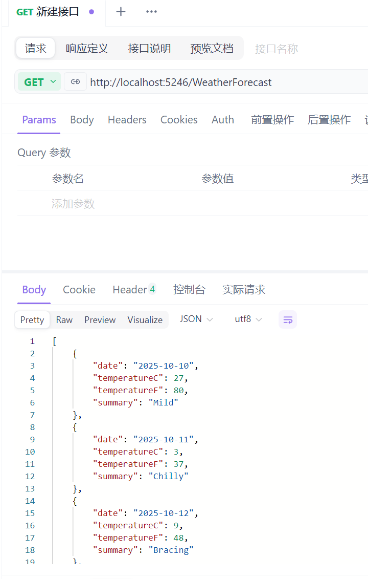 或者,你需要在 Program.cs 中修改代码,这样使用 http://localhost:5246/ 一样可以访问到一个默认的路由地址,就可以得到对应的回应了。