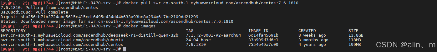 docker pull swr.cn-south-1.myhuaweicloud.com/ascendhub/centos:7.6.1810
