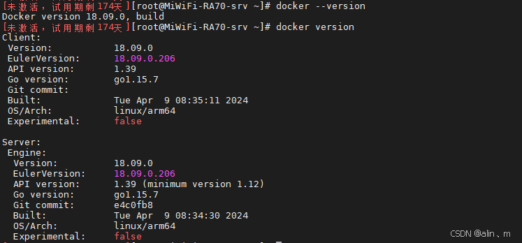 - 安装后检查。执行如下命令查询软件版本信息,查询结果与安装软件包的版本一致时,则验证安装成功