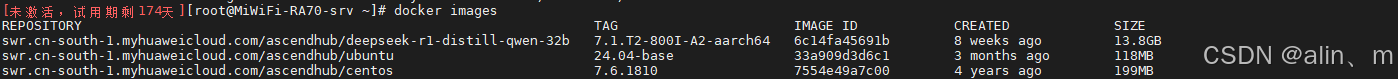 docker run -it swr.cn-south-1.myhuaweicloud.com/ascendhub/centos:7.6.1810 /bin/bash