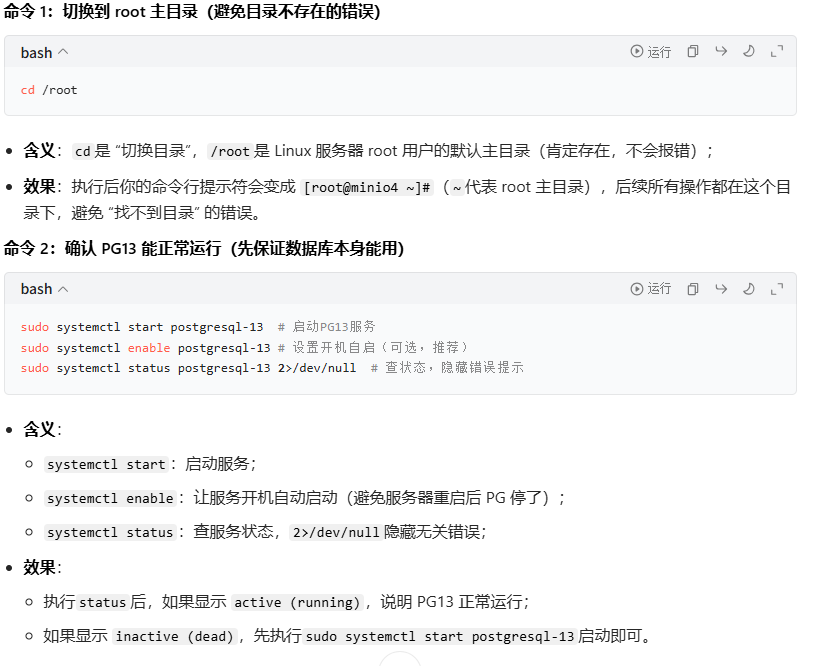 # 检查 PostgreSQL 13 是否受影响 ls /usr/pgsql-13/ # 应该还存在 # 如果需要切换到 PostgreSQL 13 systemctl status postgresql-13.service# 还可以用 psql -V 来判断