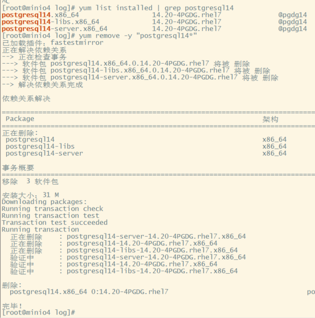# 卸载PG14的核心包(复制上面查到的包名,比如下面这些)