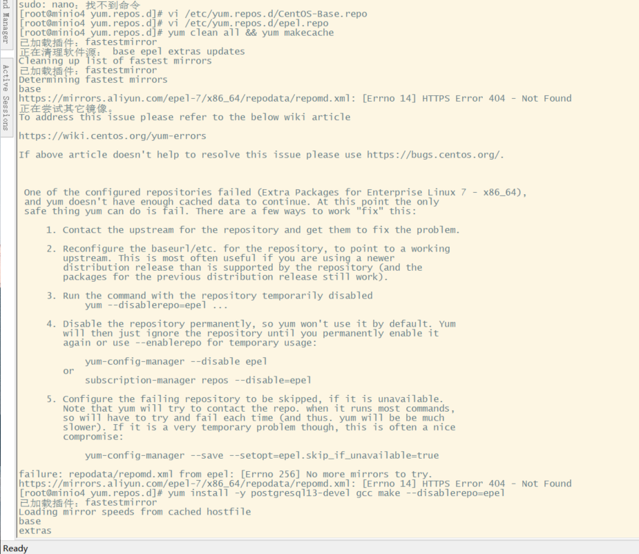 pgvector 是源码安装,需要 “编译器 + PG13 开发包 + git”,执行以下命令: