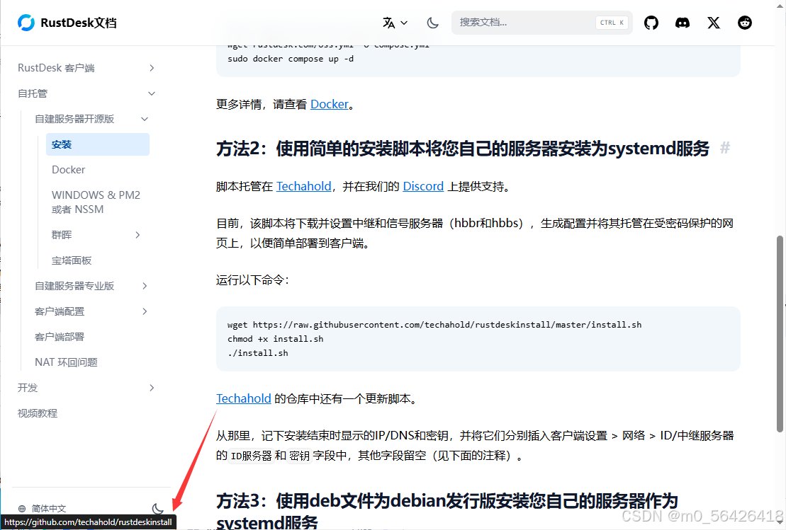 脚本地址:https://github.com/techahold/rustdeskinstall