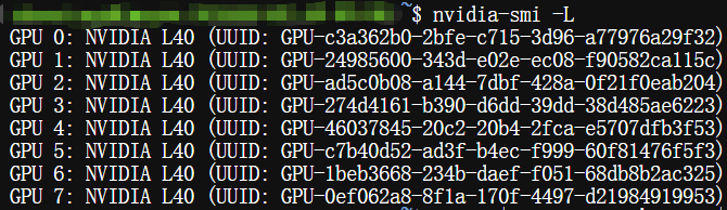- (1) 运行nvidia-smi -L,查看GPU的具体识别情况
