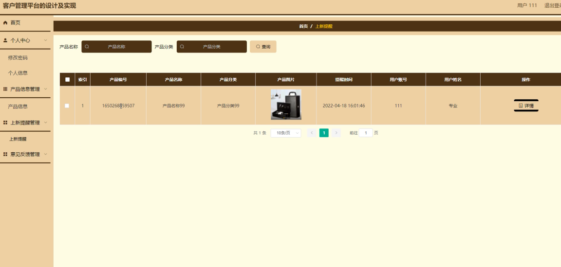 项目功能:用户,产品分类,产品信息,上新提醒,意见反馈