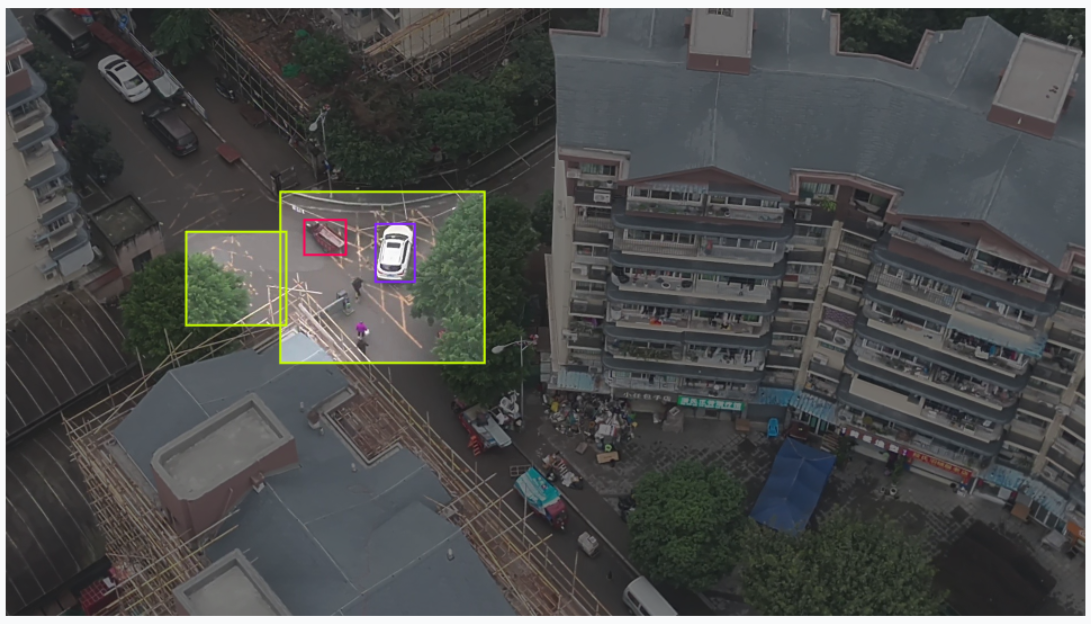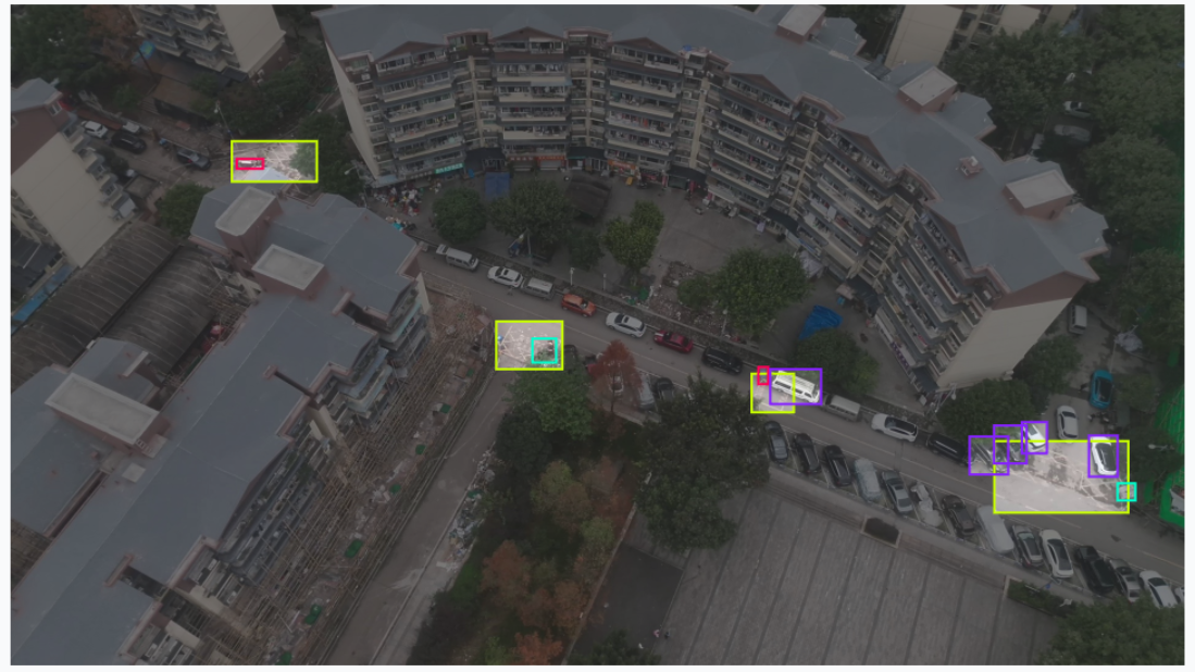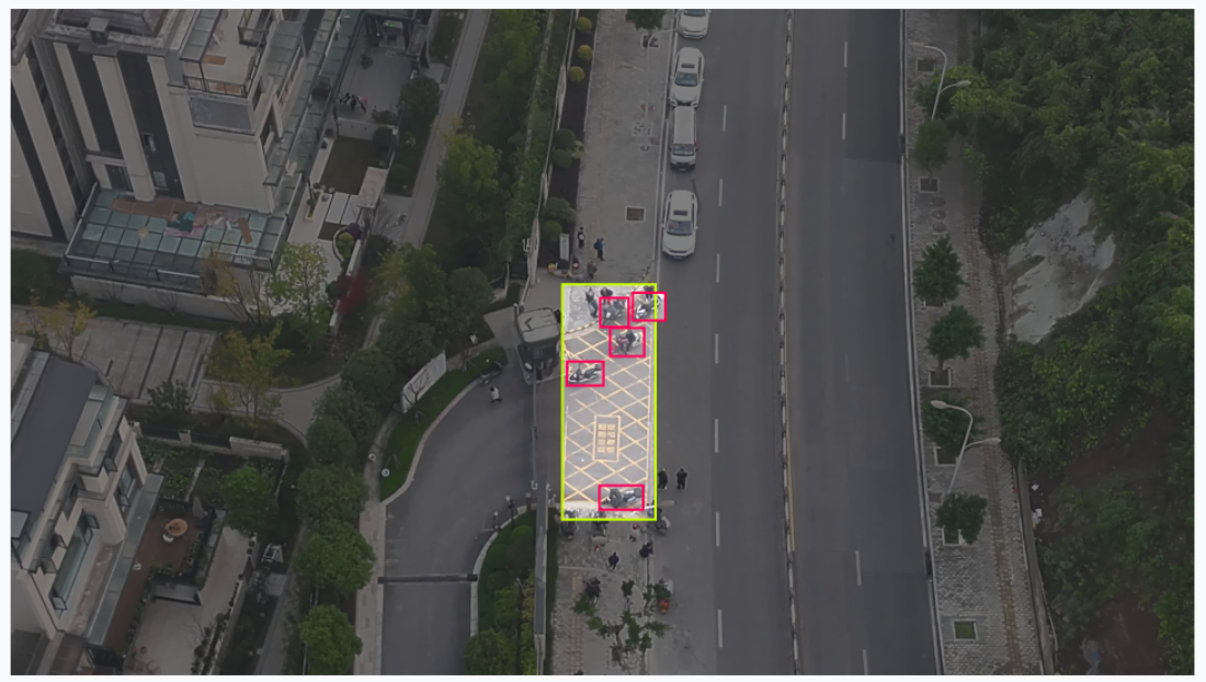 无人机消防通道占用检测数据集 无人机商业摊位占用、机动车占用、杂物堆放占用、消防通道、非机动车占用 消防通道占用行为及消防通道本身