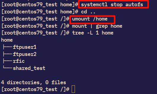 (2)退出home目录,再卸载autofs.rule:umount /home。