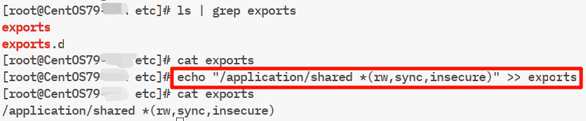 /application/shared 192.168.205.XXX(rw,sync,insecure)