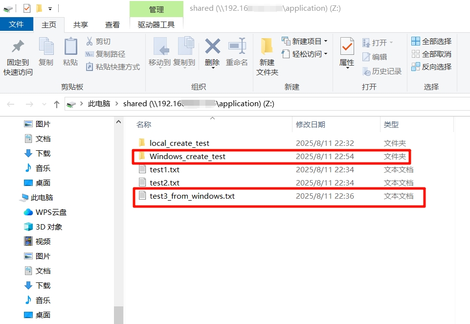 (4)打开本地挂载目录,查看共享目录:ls /home/shared_test