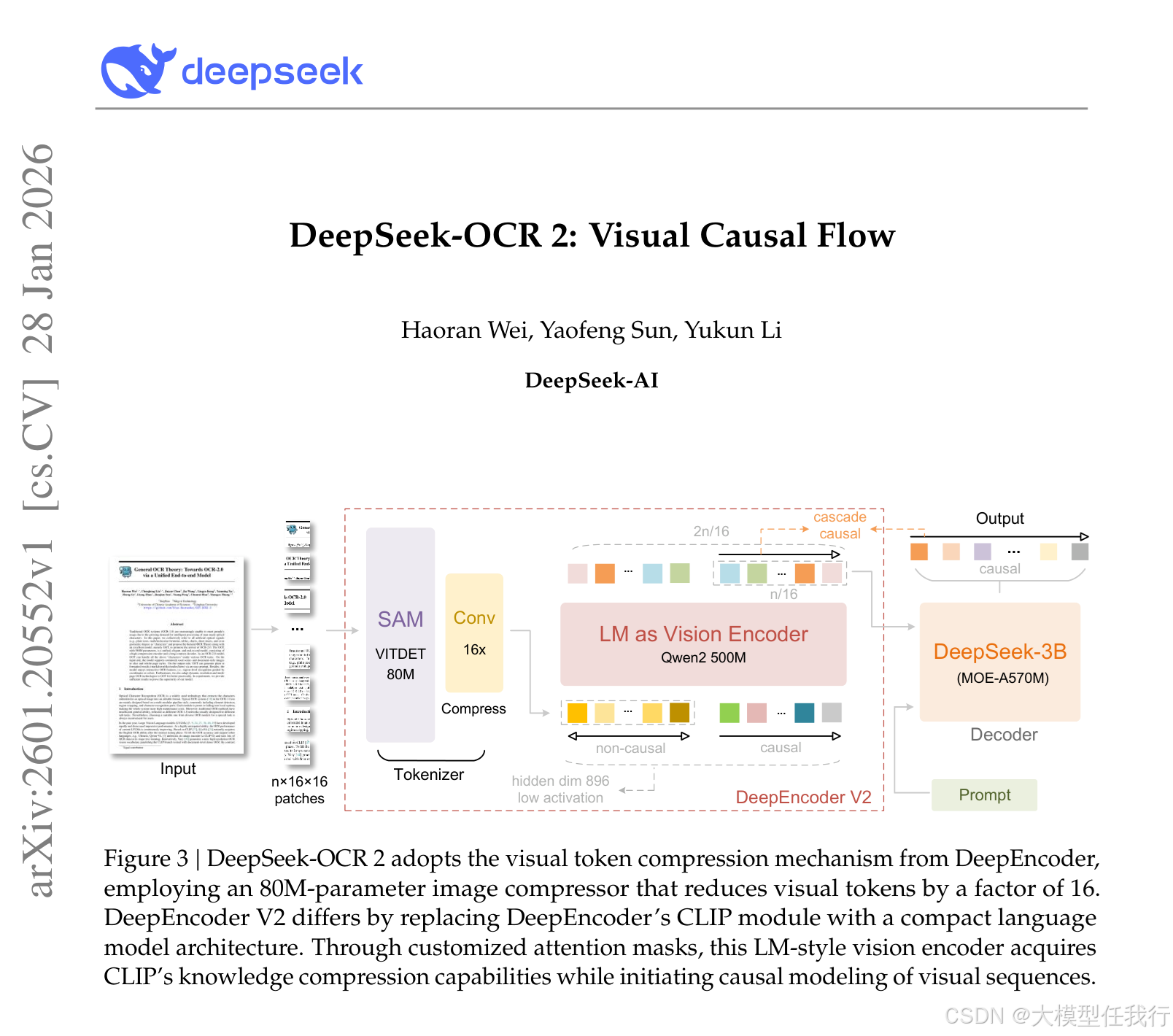 📖标题:DeepSeek-OCR 2: Visual Causal Flow🌐来源:arXiv, 2601.20552v1🌟摘要我们提出DeepSeek-OCR