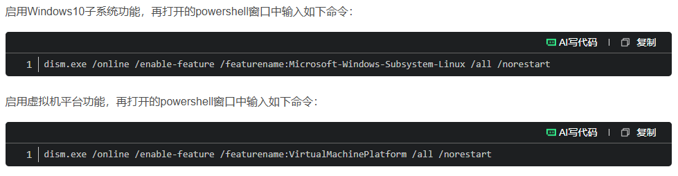 一、WSL 参考链接,安装只需要看到3.5,3.4为示例:WSL+Ubuntu 注意事项: 这两个命令完成之后,重启电脑。 刚进入linux系