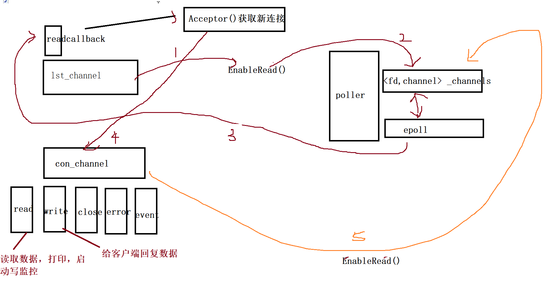 一、Channel和Poller协调合作测试测试思路:创建一个监听套接字的Channel:lst_channel,对可读回调函数void SetReadCallback(c