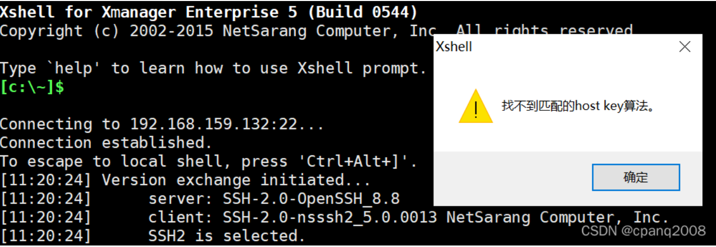 问题描述 在使用 XShell 连接 Linux 服务器时,遇到以下错误: 找不到匹配的 host key 算法Unable to negotiate with xxx.xxx