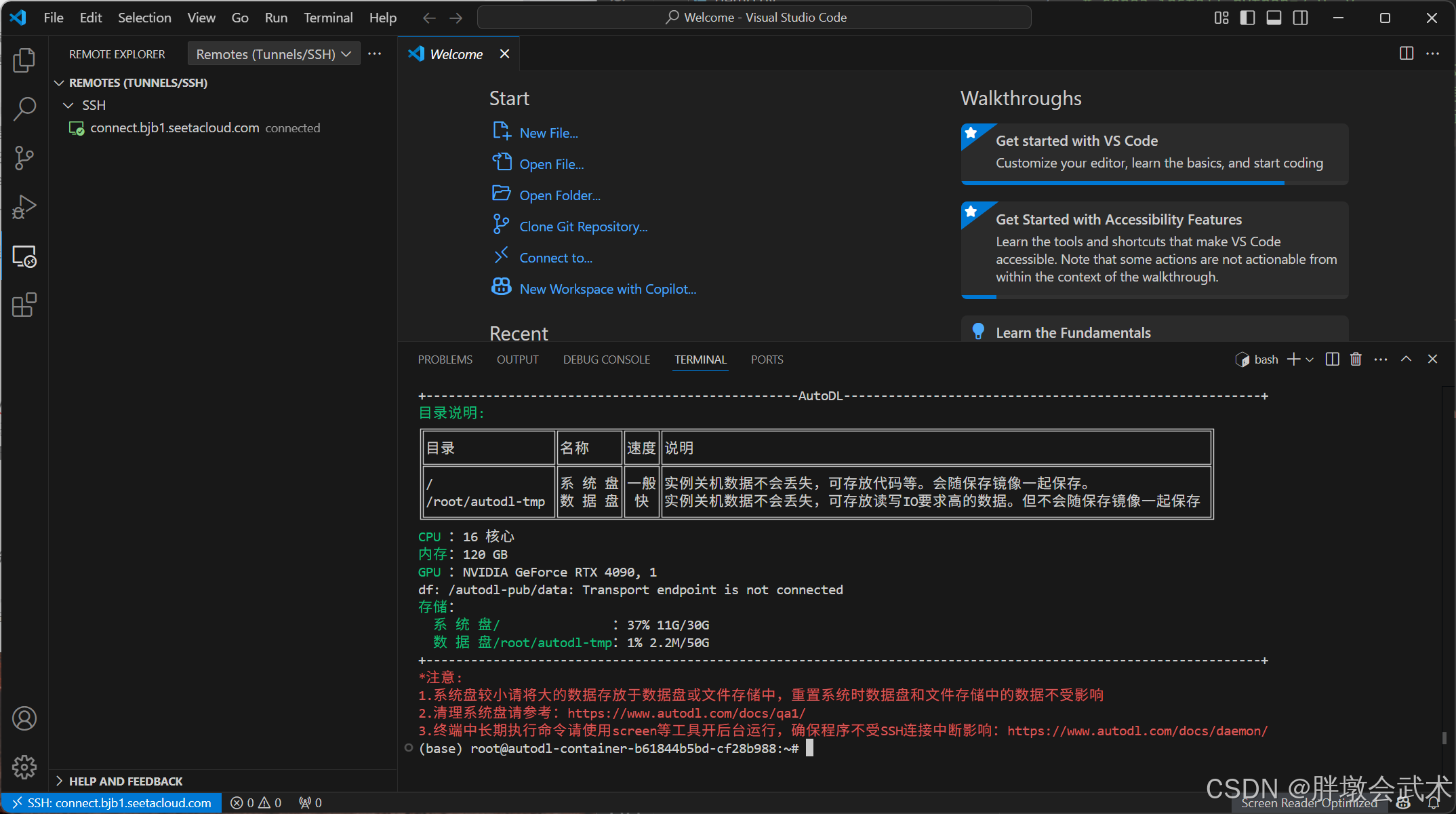 文章目录 一、VSCode远程连接AutoDL服务器(1)获取AutoDL实例登录信息(2)安装Remote-SSH插件(VSCode首次使用)(3)远程