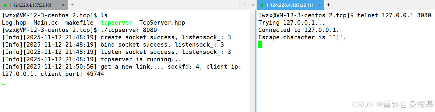 【linux】网络套接字编程(四)TCP服务器与客户端的实现(单进程/单线程的TCP服务器),setsockopt,listen,accept,telnet,connect,inet_pton