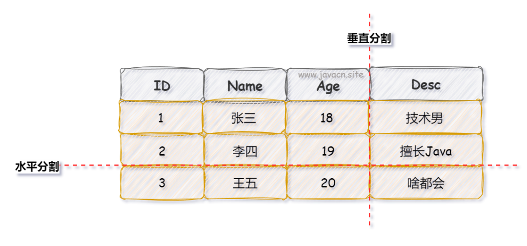 如果搞不清楚什么是垂直分表和什么是水平分表?可以参考一下这幅图思考一下: