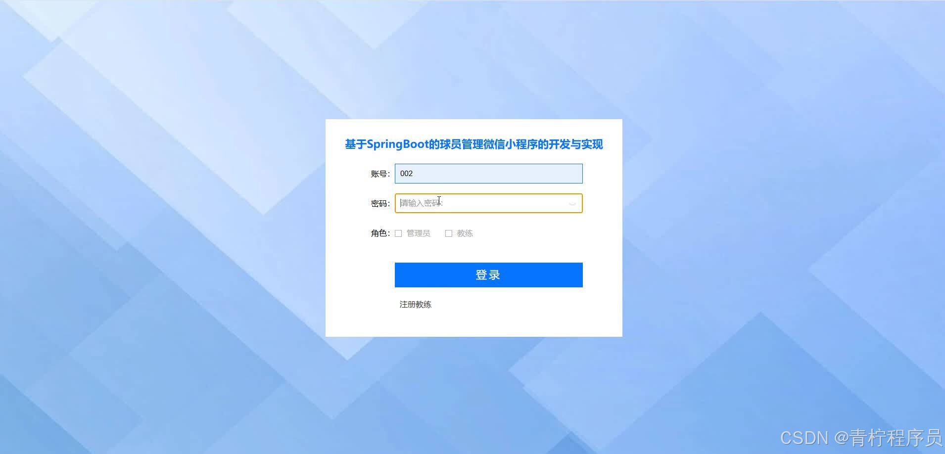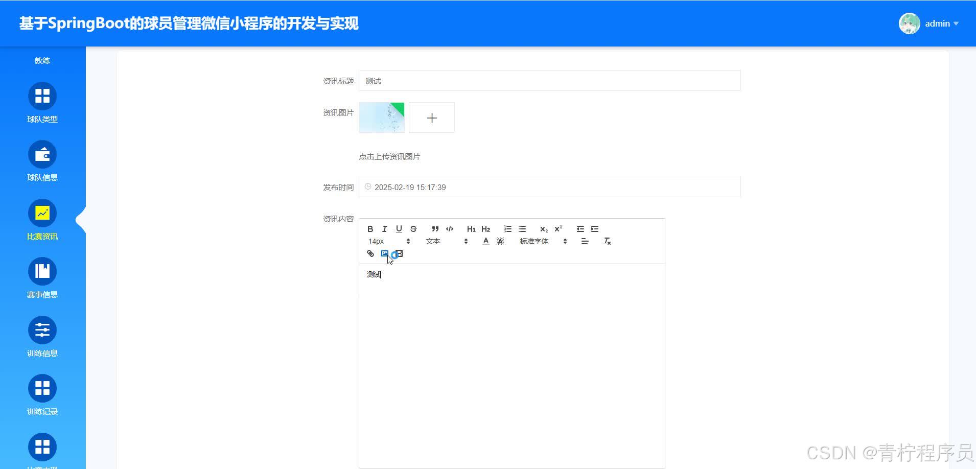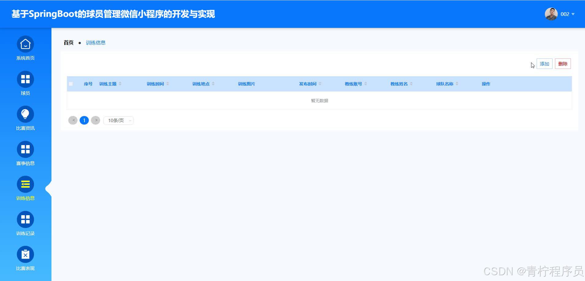 该小程序借助B/S 架构、Spring Boot 框架、Vue 技术,搭配 Java 语言与 MySQL 数据库,采用前后端分离架构进行打造。它集成了球员信息管理、教练任务安排、比赛资讯发布以及数据统计分析等核心功能模块。其中,球员信息管理模块详细记录球员全方位信息,为教练制定决策提供有力支撑;教练安排模块可规划训练;比赛资讯发布模块能实时推送赛事动态;数据统计分析模块则辅助教练挖掘数据价值,及时调整训练与比赛策略。