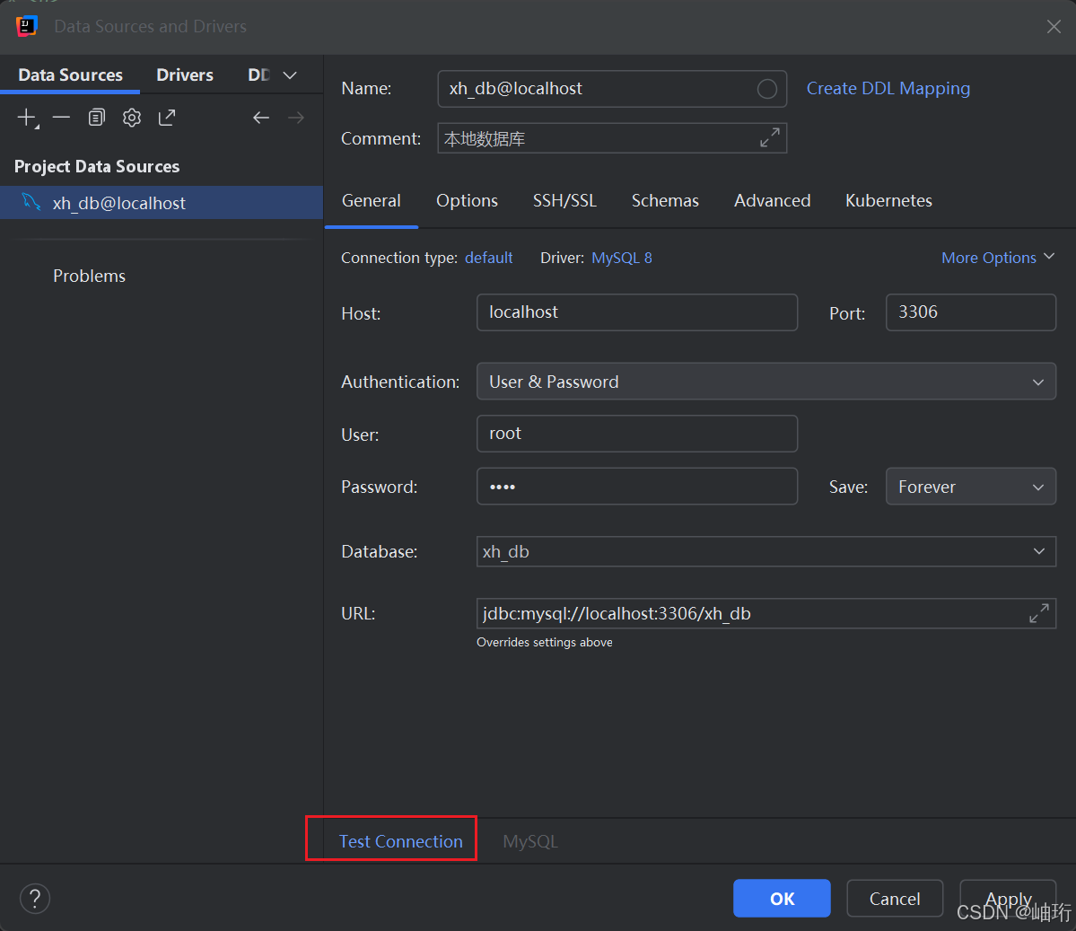 点掉弹窗后Test Connection后面会有个对钩,表示测试通过