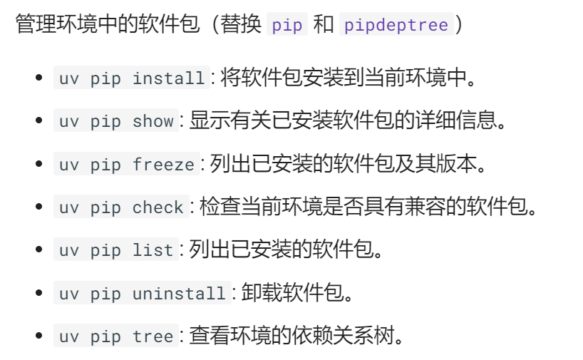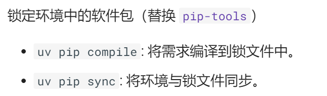 uv 为常见的 pip、pip-tools 和 virtualenv 命令提供了即插即用的替代方案。