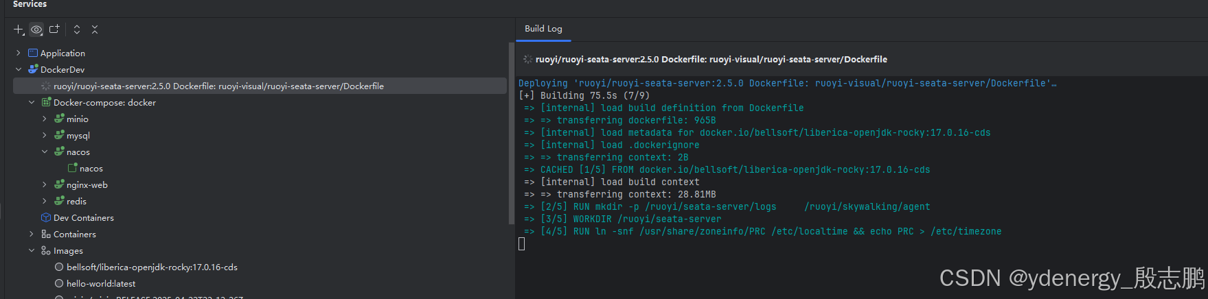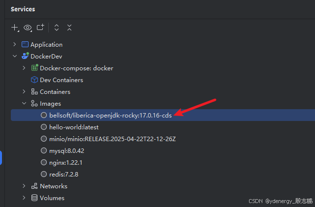 找到项目提供的nacos服务中的Dockerfile文件,可见这里使用了bellsoft/liberica-openjdk-rocky:17.0.16-cds镜像,请前往第二小节安装镜像阶段,安装此镜像