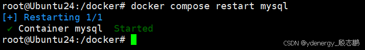 docker-compose restart 容器名称container_name来实现,例如重启mysql