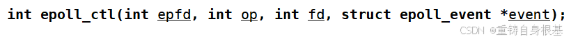- 所以我们观察上图,oper分为三种,分别是EPOLL_CTL_DEL删除节点,EPOLL_CTL_ADD新增节点,EPOLL_CTL_MOD修改节点,那么其实我们思考一下,epoll_ctl本质上是操作的epoll模型中的红黑树,并且红黑树节点的键值key是文件描述符sock,节点value中包含文件描述符sock和event事件