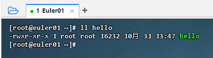 执行命令:ll hello,查看可执行文件hello信息