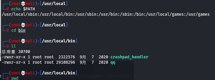 每个目录以“ : ”符号进行分隔,例如当我们在终端输入qq,nameshell就会解析PATH环境变量从/usr/local/bin目录下找到qq程序并执行。那么我们可以从这些目录中检查是否存在异常文件或代码等等。